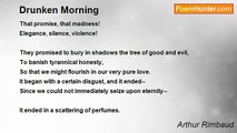Unwashed <br />Drinks: <br />Mother-of-pearl <br />Sees: <br /> <br />Bitter <br />Law, <br />Carriage <br />Falls! <br /> <br />Woman <br />Tumbles: <br />Loin <br /> <br />Bleeds: <br />- Whimpers! <br />Outcry. <br /> <br /> <br />Original French <br /> <br /> <br />Cocher ivre <br /> <br /> <br />Pouacre <br />Boit : <br />Nacre <br />Voit : <br /> <br />Acre <br />Loi, <br />Fiacre <br />Choit ! <br /> <br />Femme <br />Tombe : <br />Lombe <br /> <br />Saigne : <br />- Clame ! <br />Geigne.<br /><br />Arthur Rimbaud<br /><br />http://www.poemhunter.com/poem/drunken-coachman/