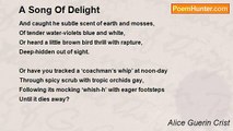Under the wintry skies, <br />Sundered from home and kin, <br />With patience and love in her eyes, <br />Mary is journeying. <br />The angels keep watch and ward, <br />And Joseph is there to guard, <br />But – ‘there is no room at the inn.” <br /> <br />No room in the inns of Life, <br />No place for Christ the King, <br />Through the Heavens with joy are rife, <br />Where worshipping angels sing, <br />In palace, and street and mart, <br />In the worlds great pagan heart <br />There is no welcoming. <br /> <br />But in far cathedrals dim, <br />Where Christmas lilies bloom <br />‘Mid incense and holy hymn, <br />And tapers lighting the gloom, <br />Where the Christmas crib is laid, <br />And children come, unafraid <br />His own are finding Him room. <br /> <br />Here the humble ones of the earth, <br />The poor, and the sorely tried <br />Are waiting the dear Lord’s birth, <br />And their arms are open wide, <br />And Mary will find them grace <br />Who makes for Her child a place <br />In their hearts, this Christmas-tide.<br /><br />Alice Guerin Crist<br /><br />http://www.poemhunter.com/poem/christmas-welcome/