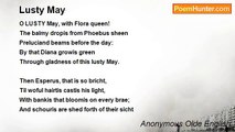 Of on that is so fayr and bright <br />Velut maris stella, <br />Brighter than the day is light, <br />Parens et puella: <br />Ic crie to the, thou see to me, <br />Levedy, preye thi Sone for me, <br />Tam pia, <br />That ic mote come to thee <br />Maria. <br /> <br /> <br />Al this world was for-lore <br />Eva peccatrice, <br />Tyl our Lord was y-bore <br />De te genetrice. <br />With <br />ave <br />it went away <br />Thuster nyth and cometh the day <br />Salutis; <br />The welle springeth ut of the <br />Virtutis. <br /> <br />Levedy, flour of alle thing, <br />Rosa sine spina, <br />Thu bere Jhesu, hevene king, <br />Gratia divina: <br />Of all thu berst the pris, <br />Levedy, quee of paradys <br /> <br />Electa: <br /> <br />Mayde milde, Moder <br />es <br />Effecta.<br /><br />Anonymous Olde English<br /><br />http://www.poemhunter.com/poem/a-hymn-to-the-virgin-2/