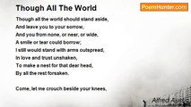 'Tis because, though in dusky bower, <br />With love delighted still thou art; <br />Nor hath the deepening twilight power <br />To lay a curfew on thy heart. <br />Thou lovest; and, loving, dost prolong <br />The sense of sunlight with thy song.<br /><br />Alfred Austin<br /><br />http://www.poemhunter.com/poem/tis-because-though-in-dusky-bower/
