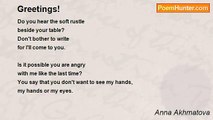 The pillow hot <br />On both sides, <br />The second candle <br />Dying, the ravens <br />Crying. Haven't <br />Slept all night, too late <br />To dream of sleep... <br />How unbearably white <br />The blind on the white window. <br />Good morning, morning!<br /><br />Anna Akhmatova<br /><br />http://www.poemhunter.com/poem/the-pillow-hot/
