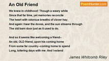 'He is my friend,' I said,-- <br />'Be patient!' Overhead <br />The skies were drear and dim; <br />And lo! the thought of him <br />Smited on my heart--and then <br />The sun shone out again! <br /> <br />'He is my friend!' The words <br />Brought summer and the birds; <br />And all my winter-time <br />Thawed into running rhyme <br />And rippled into song, <br />Warm, tender, brave, and strong. <br /> <br />And so it sings to-day.-- <br />So may it sing alway! <br />Though waving grasses grow <br />Between, and lilies blow <br />Their trills of perfume clear <br />As laughter to the ear, <br />Let each mute measure end <br />With 'Still he is thy friend.'<br /><br />James Whitcomb Riley<br /><br />http://www.poemhunter.com/poem/my-friend-205/
