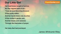 They walk here with us, hand-in-hand; <br />We gossip, knee-by-knee; <br />They tell us all that they have planned-- <br />Of all their joys to be,-- <br />And, laughing, leave us: And, to-day, <br />All desolate we cry <br />Across wide waves of voiceless graves-- <br />Good-by! Good-by! Good-by!<br /><br />James Whitcomb Riley<br /><br />http://www.poemhunter.com/poem/our-own-2/