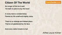 Serene he stands, with mist serenely crowned, <br />And draws a cloak of trees about his breast. <br />The thunder roars but cannot break his rest <br />And from his rugged face the tempests bound. <br />He does not heed the angry lightning's wound, <br />The raging blizzard is his harmless guest, <br />And human life is but a passing jest <br />To him who sees Time spin the years around. <br /> <br />But fragile souls, in skyey reaches find <br />High vantage-points and view him from afar. <br />How low he seems to the ascended mind, <br />How brief he seems where all things endless are; <br />This little playmate of the mighty wind <br />This young companion of an ancient star.<br /><br />Alfred Joyce Kilmer<br /><br />http://www.poemhunter.com/poem/mount-houvenkopf-2/