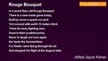 (For Katherine Bregy) <br /> <br />I went to gather roses and twine them in a ring, <br />For I would make a posy, a posy for the King. <br />I got an hundred roses, the loveliest there be, <br />From the white rose vine and the pink rose bush and from the red rose tree. <br /> <br />But when I took my posy and laid it at His feet <br />I found He had His roses a million times more sweet. <br />There was a scarlet blossom upon each foot and hand, <br />And a great pink rose bloomed from His side for the healing of the land. <br /> <br />Now of this fair and awful King there is this marvel told, <br />That He wears a crown of linked thorns instead of one of gold. <br />Where there are thorns are roses, and I saw a line of red, <br />A little wreath of roses around His radiant head. <br /> <br />A red rose is His Sacred Heart, a white rose is His face, <br />And His breath has turned the barren world to a rich and flowery place. <br />He is the Rose of Sharon, His gardener am I, <br />And I shall drink His fragrance in Heaven when I die.<br /><br />Alfred Joyce Kilmer<br /><br />http://www.poemhunter.com/poem/roses-76/