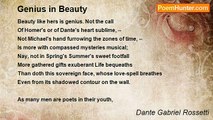 AND didst thou know indeed, when at the font <br />Together with thy name thou gav'st me his, <br />That also on thy son must Beatrice <br />Decline her eyes according to her wont, <br />Accepting me to be of those that haunt <br />The vale of magical dark mysteries <br />Where to the hills her poet's foot-track lies, <br />And wisdom's living fountain to his chaunt <br />Trembles in music? This is that steep land <br />Where he that holds his journey stands at gaze <br />Tow'rd sunset, when the clouds like a new height <br />Seem piled to climb. These things I understand: <br />For here, where day still soothes my lifted face, <br />On thy bowed head, my father, fell the night.<br /><br />Dante Gabriel Rossetti<br /><br />http://www.poemhunter.com/poem/dantis-tenebrae-in-memory-of-my-father/