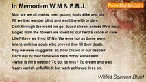 Glad bird, I do bewail thee, <br />Thy song it was so sweet <br />That Earth looked up to hail thee <br />Till wings grew to her feet. <br />But, ah! thy mate is lying dead <br />Among the new--mown hay, <br />And a fowler comes to jail thee <br />Where thou shalt pine away. <br /> <br />Bright butterfly, I wail thee, <br />So dainty was thy wing, <br />So bravely didst regale thee <br />On every honied thing. <br />But thou art all too lightly clad <br />For any month but May, <br />And Autumn rains shall trail thee <br />And wash thy paint away. <br /> <br />Sweet childhood, I bewail thee. <br />Thy smile it shifteth ever <br />As the ship that thou dost sail thee <br />Adown the running river. <br />But ah! life's river runneth fast <br />And forward lies the sea, <br />And what shall then avail thee <br />Thy laughter and thy glee? <br /> <br />And youth, I most bewail thee, <br />Thy purpose was so great, <br />But the fools that did assail thee <br />Were stronger than thy fate, <br />And thy heart it was so ruddy red <br />That every archer knew <br />Where he might best impale thee <br />And drive his arrows through.<br /><br />Wilfrid Scawen Blunt<br /><br />http://www.poemhunter.com/poem/glad-bird-i-do-bewail-thee/