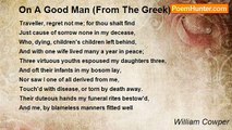Pity, says the Theban bard, <br />From my wishes I discard; <br />Envy, let me rather be, <br />Rather far, a theme for thee. <br />Pity to distress is shown. <br />Envy to the great alone-- <br />So the Theban -- But to shine <br />Less conspicuous be mine! <br />I prefer the golden mean, <br />Pomp and penury between; <br />For alarm and peril wait <br />Ever on the loftiest state <br />And the lowest to the end <br />Obloquy and scorn attend.<br /><br />William Cowper<br /><br />http://www.poemhunter.com/poem/on-envy-from-the-greek/