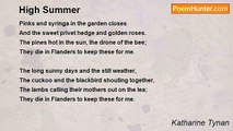 This is the sign! <br />This flooding splendour, golden and hyaline, <br />This sun a golden sea on hill and plain, -- <br />That God forgets not, that He walks with men. <br />His smile is on the mountain and the pool <br />And all the fairy lakes are beautiful. <br />This is the word! <br />That makes a thing of flame the water-bird. <br />This mercy of His fulfilled in the magical <br />Clear glow of skies from dawn to evenfall, <br />Telling His Hand is over us, that we <br />Are not delivered to the insatiable sea. <br />This is the pledge! <br />The promise writ in gold to the water's edge: <br />His bow's in Heaven and the great floods are over. <br />Oh, broken hearts, lift up! The Immortal Lover <br />Embraces, comforts with the enlivening sun, <br />The sun He bids stand still till the day is won.<br /><br />Katharine Tynan<br /><br />http://www.poemhunter.com/poem/indian-summer-14/