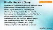 Everything tastes sweet as coke <br />when eaten after artichoke: <br />they say its cynarin can fool <br />the taste buds on the tongue––how cool! <br />But there’s another way that you can treat <br />yourself with something that’s as sweet, <br />and that’s to savor, slowly, kisses <br />that you are given by your missus; <br />if you’re as lucky as I’ve been, <br />her kisses won’t be saccharine. <br /> <br /> <br />My wife, who is a lovely wench, <br />once kissed me in the way called French; <br />by Cupid's arrow I was stung <br />and could not find another tongue <br />like hers or taste a winner in <br />my mouth as sweet as cynarin, <br />and when I'd recapitulate <br />she'd never once acidulate. <br />That's why I am her party bloke, <br />her petit chou and artichoke. <br /> <br /> <br />Amanda Hesser, in 'from Out of the Mists, the Artichoke' (NYT, March 10,1999) , writes about the artichokes that grow in the Salinas valley just north of Santa Cruz, near Castroville and Davenport. At Yale University, Linda Bartoshuk found that cynarin, an organic compound in artichokes, causes everything eaten after artichokes to taste sweet. Cynarin inhibits sweet receptors on the tongue. When they wash away, the inhibiting effect is release and the taste receptors interpret their disappearance as sweetness. Dr. Bartoshuk says that the effect, which is genetic is more prevalent in women. There have ben few studies to determine whether the incidence of French kissing is genetic or sex-related although anecdotal information certainly suggests that the latter is true. <br /> <br />3/10/99,1/20/09<br /><br />gershon hepner<br /><br />http://www.poemhunter.com/poem/kisses-that-aren-t-saccharine/