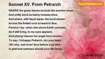 LOOSE to the wind her golden tresses stream'd, <br />Forming bright waves with amorous Zephyr's sighs; <br />And though averted now, her charming eyes <br />Then with warm love, and melting pity beam'd, <br />Was I deceived?--Ah! surely, nymph divine! <br />That fine suffusion on thy cheek was love; <br />What wonder then those beauteous tints should move, <br />Should fire this heart, this tender heart of mine! <br />Thy soft melodious voice, thy air, thy shape, <br />Were of a goddess--not a mortal maid; <br />Yet though thy charms, thy heavenly charms should fade, <br />My heart, my tender heart could not escape; <br />Nor cure for me in time or change be found: <br />The shaft extracted does not cure the wound!<br /><br />Charlotte Smith<br /><br />http://www.poemhunter.com/poem/sonnet-xiv-from-petrarch/