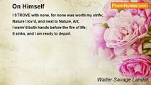 Why is, and whence, the Po in flames? and why <br />In consternation do its borderers raise <br />Imploring hands to mortal men around <br />And Gods above? Are Gods implacable? <br />Or men bereft of sight at such a blaze? <br />Apollo hath no more a son; his breath <br />Is stifled, and smoke only fills the air <br />Where once was fire, and men to men were true. <br />Fierce ones and faithless now approach the waste, <br />Who look transversely with an evil eye, <br />And scowl and threaten, and uplift the sword, <br />And, if they lower it, 'tis but to grasp more <br />And more of amber left on either bank. Apollo hates the land he once so loved, <br />Nor swan is seen nor nightingale is heard <br />Nigh the dead river and affrighted vale, <br />For every Nymph shed there incessant tears, <br />And into amber hardened all they shed.<br /><br />Walter Savage Landor<br /><br />http://www.poemhunter.com/poem/on-the-conflagration-of-the-po/