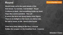 Then walk the floor, or twist upon your bed <br />While bullets, cold and blind, rush backward from the target’s eye, <br />And say, “I will not dream that dream again. I will not dream <br />Of long-spent whispers vanishing down corridors <br />That turn through buildings I have never known; <br />The snap of rubber gloves; the tall child, blind, <br />Who calls my name; the stained sheets <br />Of another girl. And then a low bell, <br />Sounding through shadows in the cold, <br />Disturbs the screen that is my mind in sleep. <br /> <br /> <br />“—Your face is never clear. You always stand <br />In charcoal doorways in the dark. Part of your face <br />is gone. You say, ‘Just to be through with this damned world. <br />Contagious fogs blow in. Christ, we could die <br />The way deer sometimes do, their antlers locked, <br />Rotting in snow.’ <br />“And I can never speak. <br />But have I ever told the truth to you? <br />I did not ask for this; a new disease threads in. <br />I want your lips upon my lips, your mouth <br />Upon my breasts, again, again, again, again; <br />I want the morning filled with sun. <br /> <br /> <br />“But I must dream once more of cities burned away, <br />Corrupted wood, and silence on the piers. <br />Love is a sickroom with the roof half gone <br />Where nights go down in a continual rain. <br /> <br /> <br />Heart, heart. I do not live. The lie of peace <br />Echoes to no end; the clocks are dead. <br />What we have had we will not have again.”<br /><br />Weldon Kees<br /><br />http://www.poemhunter.com/poem/girl-at-midnight/