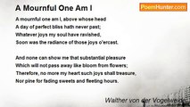 Worthy art thou, returning home, the bell <br />For thee should ring, and crowds come gathering round <br />To gaze, how as a gladdening miracle <br />Thou com'st, of sin or shame all blameless found. <br />Man's praise and woman's love shall thus abound; <br />And this thy glorious welcome shall dispel <br />The slanderous words which some have breathed around, <br />That honour bade thee still at distance dwell.<br /><br />Walther von der Vogelweide<br /><br />http://www.poemhunter.com/poem/worthy-art-thou-returning-home/