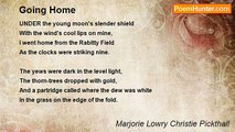 I shall not go with pain <br />Whether you hold me, whether you forget <br />My little loss and my immortal gain. <br />O flower unseen, O fountain sealed apart! <br />Give me one look, one look remembering yet, <br />Sweet heart. <br /> <br />I shall not go with grief, <br />Whether you call me, whether you deny <br />The crowning vintage and the golden sheaf. <br />O, April hopes that blossom but to close! <br />Give me one look, one look and so good-bye, <br />Red rose. <br /> <br />I shall not go with sighs, <br />But as full-crowned the warrior leaves the fight, <br />Dawn on his shield and death upon his eyes. <br />O, life so bitter-sweet and heaven so far! <br />Give me one look, one look and so good night, <br />My star.<br /><br />Marjorie Lowry Christie Pickthall<br /><br />http://www.poemhunter.com/poem/i-shall-not-go-with-pain/