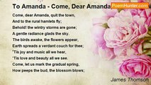 Sweet tyrant Love,- but hear me now! <br />And cure while young this pleasing smart; <br />Or rather aid my trembling vow, <br />And teach me to reveal my heart. <br /> <br />Tell her, whose goodness is my bane, <br />Whose looks have smiled my peace away, <br />Oh! whisper how she gives me pain, <br />Whilst undesigning, frank, and gay. <br /> <br />'Tis not for common charms I sigh, <br />For what the vulgar beauty call; <br />'Tis not a cheek, a lip, an eye, <br />But 'tis the soul that lights them all! <br /> <br />For that I drop the tender tear, <br />For that I make this artless moan; <br />Oh! sigh it, Love! into her ear, <br />And make the bashful lover known.<br /><br />James Thomson<br /><br />http://www.poemhunter.com/poem/to-love-amanda/