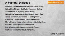 When first Alexis did in Verse delight, <br />His Muse in Low, but Graceful Numbers walk't, <br />And now and then a little Proudly stalk't; <br />But never aim'd at any noble Flight: <br />The Herds, the Groves, the gentle purling Streams, <br />Adorn'd his Song, and were his highest Theams. <br /> <br />But Love these Thoughts, like Mists, did soon disperse, <br />Enlarg'd his Fancy, and set free his Muse, <br />Biding him more Illustrious Subjects choose; <br />The Acts of Gods, and God-like Men rehearse. <br />From thence new Raptures did his Breast inspire, <br />His scarce Warm-Heart converted was to Fire. <br /> <br />Th' exalted Poet rais'd by this new Flame, <br />With Vigor flys, where late he crept along, <br />And Acts Divine, in a Diviner Song, <br />Commits to the eternal Trompe of Fame. <br />And thus Alexis does prove Love to be, <br />As the Worlds Soul, the Soul of Poetry.<br /><br />Anne Killigrew<br /><br />http://www.poemhunter.com/poem/love-the-soul-of-poetry-2/