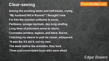 I’ll go among the dead to see my friend. <br />The place I leave is beautiful: the sea <br />Repeats the winds’ far swell in its long sound, <br />And, there beside it, houses solemnly <br />Shine with the modest courage of the land, <br />While swimmers try the verge of what they see. <br /> <br /> <br />I cannot go, although I should pretend <br />Some final self whose phantom eye could see <br />Him who because he is not cannot change. <br />And yet the thought of going makes the sea, <br />The land, the swimmers, and myself seem strange, <br />Almost as strange as they will someday be.<br /><br />Edgar Bowers<br /><br />http://www.poemhunter.com/poem/an-afternoon-at-the-beach/