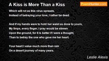 They call it a kiss <br />A butterfly’s touch <br />The gentlest rest <br /> <br />They call it a kiss <br />A summertime breeze <br />The warmest caress <br /> <br />They call it a kiss <br />A drizzling rain <br />The heavenly dress <br /> <br />They call it a kiss <br />A sweltering sun <br />The desire for less <br /> <br />They call it a kiss <br />A bee's painful sting <br />The soul of true stress <br /> <br />They call it a kiss <br />Whatever it is <br />They call it a kiss<br /><br />Leslie Alexis<br /><br />http://www.poemhunter.com/poem/a-kiss-2-2/