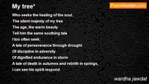 the beauty was so perfect... <br />that it felt...almost cruel, <br />i could feel the pain in my bosom... <br />the pain of its perfection. <br /> <br />i could not look away. <br />i could not blink. <br />i forgot to draw the lifegiving breath <br />that sustains this fragile being... <br /> <br />the sounds of the stream, <br />swirling, like a thousand free spirits, <br />playing at ring a roses <br />around age worn crags, <br />pulled me down, into depths so cold, so sweet, <br />filled with such tragically soft promises... <br />of heaven and honeysuckle, <br />that i felt mesmerically at peace. <br />the ecstacy was paralytic, <br />in its wholeness. <br /> <br />so long have i hunted for you, <br />years i have lusted, for a dropp <br />of this nectar... <br /> <br />here, finally, <br />i can feel you, looking upon me. <br />feel your warmth caress my face. <br /> <br />i am home! <br />i am free! <br />a child of the earth, a soul at peace. <br /> <br />o Lord, let me rest here.... <br />in the shadows of Your Grace, <br />these trappings of pretensions <br />i feel, i can't don anymore. <br />o let me stay! <br />let me swathe my spirit <br />in the balm of this quietude, <br />float like an atom, <br />upon the winds, <br />of freedom, <br />and soul.<br /><br />wardha jawdat<br /><br />http://www.poemhunter.com/poem/the-quest-1/