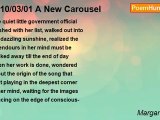 When I look at my dad, I see me, when I <br />speak, I hear my mother’s voice, when I <br />look at my hands, stocky and short, I see <br />my father’s hands, when I sing, I hear my <br />mother’s song, like my dad in appearance <br />but like my mother in sound, my mother is <br />music, my father poetry, yet the two <br /> <br />Never got along, no wonder I never got on <br />with either of them, I have lived in my own <br />world since I was small, when I try to leave <br />sharing my thoughts with others, my sand <br />castles crumble, my soap bubbles burst - <br />feeling naked and sad, alone, abandoned; <br />I immediately return to my mental citadel <br /> <br />Where no-one can get me, no feeling can <br />reach, no-one can hurt me, I have a secret <br />castle of quantum physics more mysterious <br />than the lore of the ancients, legends and <br />myths that feed my soul, a source of af- <br />fection and energy that keeps me strong <br />when reality strangles life out of me <br /> <br />Every time real-life events kill a dream, I <br />find spiritual books assuring me a vision <br />is more valid than physical things, I look <br />at fearsome ghosts and scary phantoms <br />conjured by fancy, I can make them real <br />or let them go by offering them love and <br />- I actually DO love them <br /> <br />For the role they play, keeping me en- <br />sconced in a dream that one day there <br />will be a world of unconditional love in <br />which spirits like me will exist happily... <br /> <br /> <br />Song: <br /> <br />“Listen to the ocean, echo’s of a million <br />sea shells, forever it’s in motion, moving <br />to a rhythmic and unwritten music that’s <br />played eternally...” <br />*<br /><br />Margaret Alice<br /><br />http://www.poemhunter.com/poem/2010-06-18-castle/