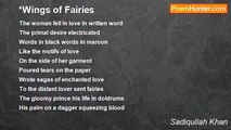 Come the way you like, <br />I have abhorrence from dreams <br />and wings that you do not have <br />but come on wings. <br /> <br />Carry some goblets filled with ash of bones, <br />some scratched earth from the hollow balls of skulls <br />someone who had eaten up both the eyes; <br />on the cold footnotes of graves <br />touch the toes for some tinkling sensation. <br /> <br />My kisses on your face has the burdens <br />of some funerals and these tears <br />from your eyes speak so much <br />to mourn about. <br /> <br />The dark green bottle that carries the genie <br />walks in slow spirits to boost <br />its cask has invented from the death of sugar <br />some juices from the autumnal fruits. <br /> <br />The water without taps and without confines, <br />my hands on my sides grow <br />letting go the walls <br />to breathe <br />to breathe <br /> <br />In the crisp white sheets on the bed <br />O angel of death! <br />behind the thicket of curtains <br />the sun did not bring hope <br /> <br />I said come flying <br />without wings. <br /> <br />Islamabad <br />July30,2010<br /><br />Sadiqullah Khan<br /><br />http://www.poemhunter.com/poem/without-wings-3/