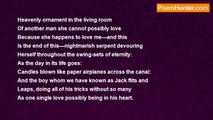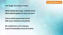I own two bicycles because I still pine for you <br />Alma, <br />Even while you make love this evening, even while you <br />Turn out all of the hope in your lighthouse, <br />So you cannot see my beauty drowning, <br />While during the day your eyes seem like brown <br />Maelstroms swirling with your breath, <br />Devouring the young heroes far more beautiful than me; <br />And still you accept my dreams and my bouquets, <br />While now all of the flowers are getting smaller as I too <br />Shrink, <br />Soon I will be so diminished as to be in danger of drowning <br />In a single tear drop, <br />Which is all that I wish from you.<br /><br />Robert Rorabeck<br /><br />http://www.poemhunter.com/poem/a-single-tear-drop-2/