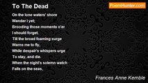 Blame not my tears, love, to you has been given <br />The brightest, best gift, God to mortals allows; <br />The sunlight of hope on your heart shines from Heaven, <br />And shines from your heart on this life and its woes. <br />Blame not my tears, love, on you her best treasure <br />Kind nature has lavished, oh, long be it yours! <br />For how barren soe'er be the path you now measure, <br />The future still woos you with hands full of flowers. <br />Oh, ne'er be that gift, love, withdrawn from thy keeping! <br />The jewel of life, its strong spirit, its wings; <br />If thou ever must weep, may it shine through thy weeping, <br />As the sun his warm rays through a spring shower flings. <br />But blame not my tears, love, to me 'twas denied, <br />And when Fate to my lips gave this life's mingled cup, <br />She had filled to the brim, from the dark bitter tide, <br />And forgotten to pour in the only sweet drop.<br /><br />Frances Anne Kemble<br /><br />http://www.poemhunter.com/poem/an-apology-17/