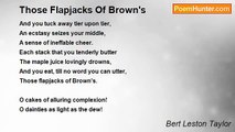 I much esteem the rubber-stamp cartoons, <br />Symbols of paleozoic pedigree -- <br />Age-battered emblems that for moons and <br />moons <br />Have roused my righteous wrath or gurgling <br />glee: <br />Stern Justice with her Scales and Snicker <br />snee, <br />The Horn of Plenty stuffed with plums and <br />pears <br />And hothouse grapes, in wild luxuriancy, <br />The dear old Paper Cap that Labor wears. <br /> <br />Dear to my heart as dim remembered runes <br />Of childhood twittered from a nurse s knee. <br />Are Uncle Sam s starred Hat and Panta <br />loons, <br />The Ship of State, the Snake of Anarchy, <br />The smoking stacks of good old Industry, <br />The tyrant Trust that nought and no one <br />spares <br />All these I cherish, one especially-- <br />The dear old Paper Cap that Labor wears. <br />Fresh as the dew upon a peck of prunes, <br />Green as Joe Miller s jocund jeux d' esprit -- <br />So fresh, so green those mossy old lampoons <br />That never fail to make a hit with me: <br />The Dinner Pail, the Presidential Bee, <br />Oblivion s Chasm, to which the dead one <br />fares, <br />And rooted like an oak in memory -- <br />The dear old Paper Cap that Labor wears. <br /> <br />Immortal lid, I lift my own to thee! <br />Tenacious lid, that Time nor dents nor tears! <br />Symbol encrusted with antiquity! -- <br />The dear old Paper Cap that Labor wears.<br /><br />Bert Leston Taylor<br /><br />http://www.poemhunter.com/poem/ballade-of-a-moss-grown-symbol/