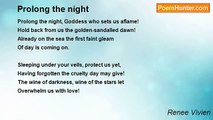 Your laughter is light, your caress deep, <br />Your cold kisses love the harm they do; <br />Your eyes-blue lotus waves <br />And the water lilies are less pure than your face.. <br /> <br />You flee, a fluid parting, <br />Your hair falls in gentle tangles; <br />Your voice-a treacherous tide; <br />Your arms-supple reeds. <br /> <br />Long river reeds, their embrace <br />Enlaces, chokes, strangles savagely, <br />Deep in the waves, an agony <br />Extinguished in a night drift.<br /><br />Renee Vivien<br /><br />http://www.poemhunter.com/poem/undine-3/