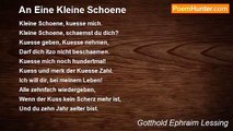 Ein trunkner Dichter leerte <br />Sein Glas auf jeden Zug; <br />Ihn warnte sein Gefaehrte: <br />Hoer auf! du hast genug. <br />Bereit vom Stuhl zu sinken, <br />Sprach der: Du bist nicht klug; <br />Zu viel kann man wohl trinken, <br />Doch nie trinkt man genug.<br /><br />Gotthold Ephraim Lessing<br /><br />http://www.poemhunter.com/poem/antwort-eines-trunknen-dichters/