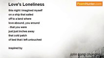 The last year's leaves are on the beech: <br />The twigs are black; the cold is dry; <br />To deeps beyond the deepest reach <br />The Easter bells enlarge the sky. <br />O ordered metal clatter-clang! <br />Is yours the song the angels sang? <br />You fill my heart with joy and grief - <br />Belief! Belief! And unbelief… <br />And, though you tell me I shall die, <br />You say not how or when or why. <br /> <br />Indifferent the finches sing, <br />Unheeding roll the lorries past: <br />What misery will this year bring <br />Now spring is in the air at last? <br />For, sure as blackthorn bursts to snow, <br />Cancer in some of us will grow, <br />The tasteful crematorium door <br />Shuts out for some the furnace roar; <br />But church-bells open on the blast <br />Our loneliness, so long and vast.<br /><br />John Betjeman<br /><br />http://www.poemhunter.com/poem/loneliness-243/