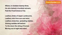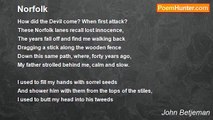 High dormers are rising <br />So sharp and surprising, <br />And ponticum edges <br />The driveways of gravel; <br />Stone houses from ledges <br />Look down on ravines. <br />The vision can travel <br />From gable to gable, <br />Italianate mansion <br />And turretted stable, <br />A sylvan expansion <br />So varied and jolly <br />Where laurel and holly <br />Commingle their greens. <br /> <br />Serene on a Sunday <br />The sun glitters hotly <br />O'er mills that on Monday <br />With engines will hum. <br />By tramway excursion <br />To Dore and to Totley <br />In search of diversion <br />The millworkers come; <br />But in our arboreta <br />The sounds are discreeter <br />Of shoes upon stone - <br />The worshippers wending <br />To welcoming chapel, <br />Companioned or lone; <br />And over a pew there <br />See loveliness lean, <br />As Eve shows her apple <br />Through rich bombazine; <br />What love is born new there <br />In blushing eighteen! <br /> <br />Your prospects will please her, <br />The iron-king's daughter, <br />Up here on Broomhill; <br />Strange Hallamshire, County <br />Of dearth and of bounty, <br />Of brown tumbling water <br />And furnace and mill. <br />Your own Ebenezer <br />Looks down from his height <br />On back street and alley <br />And chemical valley <br />Laid out in the light; <br />On ugly and pretty <br />Where industry thrives <br />In this hill-shadowed city <br />Of razors and knives.<br /><br />John Betjeman<br /><br />http://www.poemhunter.com/poem/an-edwardian-sunday-broomhill-sheffield/