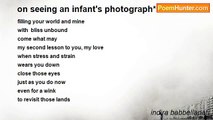On Seeing You... <br /> <br />The body that so far felt <br />Like a hollow shell <br />Thrown on the beach <br />By a vagrant child <br />The body that so far felt <br />Like an empty piece of severed bamboo <br />Fallen on an untread forest path <br />No longer felt hollow or empty <br />The shell vibrated with the roar of the sea <br />The bamboo set ripples of mystic music on the waves <br /> <br />Strangely enough, even the half-moon <br />Sprayed brightness on the dark niches <br />Your joy resonated in my heart <br />Sealing all the crevices and pushed the body <br />Towards the one loved… <br /> <br />Ah, the stuff dreams are made of <br /> <br />13 May 2011 <br />Evening<br /><br />indira babbellapati<br /><br />http://www.poemhunter.com/poem/on-seeing-you/