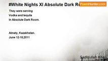 She was like a plant grown on her own, <br />Those white legs were tenderer than flowers, <br />The green eyes had been displaying, <br />Nothing ferocious or mysterious <br />Nothing scheming, <br />Nor like Helen of troy <br />Or a Cleopatra <br /> <br />She lay like ice on white canvas sheet <br />She would melt though. <br />The worshipper was still waiting for those <br />Quivering lips. <br /> <br />Strangely all this was not so intense, <br />The language was sweet and alien, <br />There was no anger in her tone, <br />No frown on her forehead. <br />Nothing was either wrong, <br /> <br />She was neither guilty, <br />The first sin has died long ago, <br />And the new sins are so sweet. <br /> <br />She woke up from her dream, <br />To the first crisp ray of the day, <br />She knew she was intact. <br /> <br />And as she left, <br />She was looking ahead in some direction, <br />There was no remorse and a small happy encounter <br />There was nothing more to the story, <br />Except that she had been drinking hard at night. <br />And she was like a bird left by the flock <br />She would then catch up, <br />In the land where fairies live.<br /><br />Sadiqullah Khan<br /><br />http://www.poemhunter.com/poem/white-nights-iii-a-girl-named-nadia/