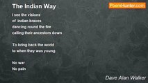 See the man <br />The indian man <br />The white man <br />Came and took his land <br /> <br />See the eagles fly <br />Where he did die <br />See the tears <br />Of the white mans fears <br /> <br />See the shame <br />Of a world in tears<br /><br />Dave Alan Walker<br /><br />http://www.poemhunter.com/poem/the-indian-man/