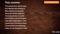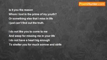 I don’t know why I like to talk with you <br />In your language <br />Why I can’t withdraw my fingers from the keys <br />Till I finished the page <br /> <br />Why do I always fall prey to your childlike charm <br />And believe your words <br />When I see you staring at me from inside the glass <br />My thoughts collapse as a tower of cards <br /> <br />The scratch you left on the surface of my heart <br />Has grown wide to touch the mind <br />Your lies and betrayal still haunt me like ghosts <br />Though much I try to leave them behind <br /> <br />Your questions have no answers with me <br />And you ask them so often <br />I tried and failed to come out from web of love <br />That around me you have spun <br /> <br />Know I well I won’t ever get you, and your love <br />Is not in my fate <br />You better find love with someone who stays near you <br />Before it would be too late<br /><br />Tiku akp<br /><br />http://www.poemhunter.com/poem/here-i-m-alone/