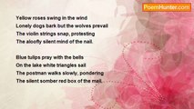 You talk not about your love, <br />For the greatest love <br />May envelop itself <br />In a lacy veil of serene secrecy. <br /> <br />You talk not about your love <br />Just look into my eyes <br />Silently, long <br />While the time resounds <br />And then recedes slowly <br />To distant shores of indigo seas <br />In my soul. <br /> <br />The wind carries quietly the clouds <br />No sound shatters the still of zephyr. <br />You talk not about your love <br />Only the heart throbs loudly. <br /> <br />Do you hear it? <br /> <br />A heavy bronze bell <br />Tolls involuntarily <br />In the placid interior <br />Of the sombre belfry <br /> <br />And the tower trembles <br />Soars in its immobility. <br /> <br />Elated, you and I walk wordlessly <br />In the deserted boulevard. <br /> <br />Like the snow of spring I melt <br />In your presence <br />While timid shadows <br />Of my dense vulnerability <br />Coagulate silently in the sunlight <br />Darkening the asphalt pavement <br />Of the afternoon street. <br /> <br />The wind carries quietly the clouds <br />No sound shatters the still of zephyr. <br />You talk not about your love <br />Though its flames burn my flesh. <br /> <br />Then the hours pass by <br />And wondrous stars flicker <br />In a magical night. <br /> <br />But now <br />I am alone in my room <br />Listening to a violin concerto <br />Of the Butterfly Lovers <br />A poignant story <br />Of eternal love <br /> <br />On a Compact Disc <br />That you gave me.<br /><br />Paul Hartal<br /><br />http://www.poemhunter.com/poem/the-silence-of-love/