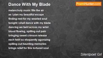 running till she was gasping for air <br />she falls down, crumpling to her knees <br />crying out in only silent painful screams <br />from piled up hurt throughout her broken life <br />her whole body is shaking with intense pain <br />like a dagger that is cutting through her heart, <br />and every bone being crushed, breaking apart. <br />her wounded spirit is shattered, abandoned, <br />tossed to the road to be carelessly trampled on <br />everything is willing her to stay knocked down <br />her world is completely crashing all around <br />hanging her head, she feels immense shame <br />with everything urging her so deeply inside <br />enticing her to give up, and to believe the lies <br />opening her clenched hand, blood drips <br />from the blade she already tightly grips...<br /><br />Silentpoet Grl<br /><br />http://www.poemhunter.com/poem/the-blade-she-tightly-grips/