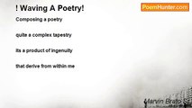 Composing a poetry <br />quite a complex tapestry <br />its a product of ingenuity <br />wave into genuine artistry <br /> <br />Don't know to begin <br />a poem that explain <br />innate sentiments <br />sensitive elements <br /> <br />like an inborn waver <br />who creates with art <br />through skillful work <br />guided by the heart <br /> <br />The beauty in poetry <br />is not seen by the eyes <br />but felt by the emotions <br />that contained in human <br /> <br />Writing is like waving <br />a poetic thoughts flowing <br />are instinctively woven right <br />that interpolates the human life <br /> <br />waving poetry is sentimental labor <br />it does require a mental endeavor <br />enthuses freedom of expression <br />about the human life's exploration<br /><br />Marvin Brato Sr<br /><br />http://www.poemhunter.com/poem/waving-a-poem/
