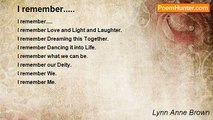 i remember when we first saw each other <br />i remember when we first spoke to one another <br />i remember when we first hung out <br />i remember when we shared our feelings <br />i remember when we first hugged <br />i remember when we first kissed <br />i remember when we said i love you <br />i remember when we said forever and always <br />but then it all changed <br />i remember when we fought over little things <br />i remember when i first said i hated you <br />i remember when when you always lied <br />i remember when i went to see you but you told me to leave <br />i remember when you said never to come around again <br />i remember when you said goodbye but then apologized <br />i remember when i let you come back <br />i remember when you never answered your phone <br />i remember when i got tired of your crap <br />i remember when you hurt me all the time <br />i remember when you watched me pack <br />i remember when you said nothing to stop me <br />i remember when i kiss you upon your head <br />i remember when i never said a word to you <br />i remember when i walked out the door <br />i remember when i didnt turn my head to look at you <br />i remmeber when i left and never came back<br /><br />Lynn Garman<br /><br />http://www.poemhunter.com/poem/i-remember-169/