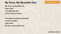 My love is in a light attire <br /> Among the apple trees, <br />Where the gay winds do most desire <br /> To run in companies. <br /> <br />There, where the gay winds stay to woo <br /> The young leaves as they pass, <br />My love goes slowly, bending to <br /> Her shadow on the grass. <br /> <br />And where the sky’s a pale blue cup <br /> Over the laughing land, <br />My love goes lightly, holding up <br /> Her dress with dainty hand.<br /><br />James Joyce<br /><br />http://www.poemhunter.com/poem/song-192/