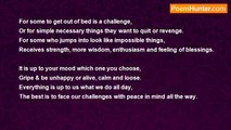 As we grow older we should become wiser, <br />But our bodies are aging without stopper. <br />However, all the time we should love our bodies, <br />Because what we are, we made it with our theories. <br /> <br />What we think or say never goes anywhere, <br />Comes back to us, we are what is there. <br />That is the reason for the wisdom to heed, <br />Keep mind focused on the best quality of thoughts as a seed. <br /> <br />What you think that is what you are, <br />Do not put yourself between a negative bar. <br />When love, peace, contentment & kindness is the way, <br />Nothing will bother you, you'll have happiness every day.<br /><br />LaSoaphia QuXazs<br /><br />http://www.poemhunter.com/poem/changing-the-picture/