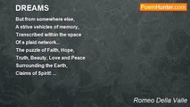 I knew you were coming, <br />Since I saw you first in my dream... <br />With God's given power for natural cloning, <br />You became my life's stream... <br /> <br />Little girl laying on my chest <br />Like an angel with a big smile and dark eyes... <br />In that dream I became so impressed <br />That I felt like in paradise... <br /> <br />The pleasure of seeing you growing <br />Like a beautiful flower in my garden, <br />Or like clear water that keeps running <br />In the fountain of my life, no longer sadden... <br /> <br />Little tender one, becoming a big girl, <br />Enjoying your laughter and suffering your pain... <br />With love for you always, my precious pearl, <br />Since you are the blood that runs through my veins... <br /> <br />(Dedicated to my daughter Sarah I. on her 21rd Birthday) <br />Happy Birthday My Darling! <br /> <br />©All Rights Reserved-2012<br /><br />Romeo Della Valle<br /><br />http://www.poemhunter.com/poem/an-image-of-me-3/
