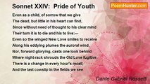 Even as a child, of sorrow that we give <br /> The dead, but little in his heart can find, <br /> Since without need of thought to his clear mind <br />Their turn it is to die and his to live: <br />Even so the winged New Love smiles to receive <br /> Along his eddying plumes the auroral wind, <br /> Nor, forward glorying, casts one look behind <br />Where night-wrack shrouds the Old Love fugitive. <br /> <br />There is a change in every hour's recall <br /> And the last cowslip in the fields we see <br /> On the same day with the first corn-poppy. <br />Alas for hourly change! Alas for all <br />The loves that from his hand proud Youth lets fall, <br /> Even as the beads of a told rosary!<br /><br />Dante Gabriel Rossetti<br /><br />http://www.poemhunter.com/poem/pride-of-youth/
