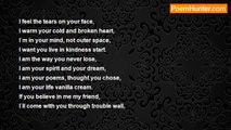 One day The Lord all Angels sent, <br />To find some love until World`s end. <br />He looked at us from Holly Sky <br />And wanted know why people cry. <br /> <br />The Angels passed through our mind, <br />They didn`t know if love they find… <br />A lot of loneliness and pain <br />They saw all pictures from the brain. <br /> <br />But could not find our hearts` warm <br />Just saw an influence of corn, <br />Just felt the doom of our dread, <br />They saw all dreams we`ve ever had. <br /> <br />They saw all people were just weak, <br />They just existed, didn`t seek <br />To find the light, because blind eyes <br />Could not in heart it recognize. <br /> <br />The angels though they won`t us leave, <br />Because in saving we believe, <br />Because we needed them at all, <br />They did not wait for our fall. <br /> <br />They asked God to send us chance <br />To stay in love, with angels dance, <br />To give us warm we`ve lost in fear, <br />They promised Him of us take care. <br /> <br />So, now all people are not slave, <br />They reach all dreams their souls crave. <br />And if they`re lonely, live in tear, <br />They should remember Angels near.<br /><br />Ekaterina Polischuk<br /><br />http://www.poemhunter.com/poem/why-angels-came/