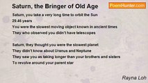 Among his siblings Mercury is fast, <br />Compared to Neptune who is always last. <br />Venus is always extremely hot, <br />While life-supporting Earth has a comfortable spot. <br />Mars' surface is very rocky, <br />About his size Jupiter is cocky. <br />Saturn is always surrounded by his rings, <br />While Uranus is strange because of many things. <br /> <br />With each other the planets compete, <br />With the special things each of them keeps. <br />And each of them has compensation, <br />For something each has wanted since its creation. <br /> <br />Mercury's small size is compensated by his speed, <br />While Venus' poisonous atmosphere makes beauty her greed. <br />Earth may be a planet considered small, <br />Yet this blue and green marble sustains all. <br />Mars is much smaller than Earth, <br />But canyons and mountains are his mirth. <br />Although Jupiter may take years to orbit the Sun, <br />His large size gives him lots of fun. <br />Saturn is inferior to Jupiter in more than one way, <br />But his lovely rings and moons surround him and he feels okay. <br />Uranus feels odd, spinning on his side, <br />Around the Sun, he is compensated by a lazy ride. <br />Though Neptune is known for his furious tides, <br />At least he does not roll on his side. <br /> <br />The planets orbit one of many stars, <br />Like the center of a racing track circled by cars. <br />They circle a yellow star having lots of fun, <br />Their parent star known as the Sun.<br /><br />Rayna Loh<br /><br />http://www.poemhunter.com/poem/the-solar-system-2/