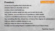 The garment girls, walking together, <br />look like hundreds of birds flying in Bangladesh's sky. <br /> <br />Garments girls, returning to their slums at midnight, <br />are met by street-vagabonds who grab a few takas from the girls, <br />pushing their bodies into the girls bodies, <br />stealing the night's spoils. <br /> <br />Despite sleepless night, before dawn the girls again walk together, <br />men's mouths getting watery when they pass and spit, <br />the girls avoiding as many as they can, <br />eating nobody's food, wearing nobody's clothes, walking, walking on. <br /> <br />Like blind bullocks, they trudge ahead, <br />have-nots dependent upon the haves, <br />forbidden to enjoy the sky's rainbows, <br />fated to be thrown around, fingered, raped in darkness and fear <br />instead of bathing joyfully in the moonlit night. <br /> <br />Like hundreds of Bangladesh flying in the world's sky, <br />the garment girls walk on, walk on.<br /><br />Taslima Nasrin<br /><br />http://www.poemhunter.com/poem/garment-girls/