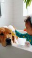 Toddler Gives dog the Cutest Bubble Bath Ever ️