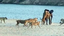 Funny Animals: Young elephant survives attack by 14 Lions